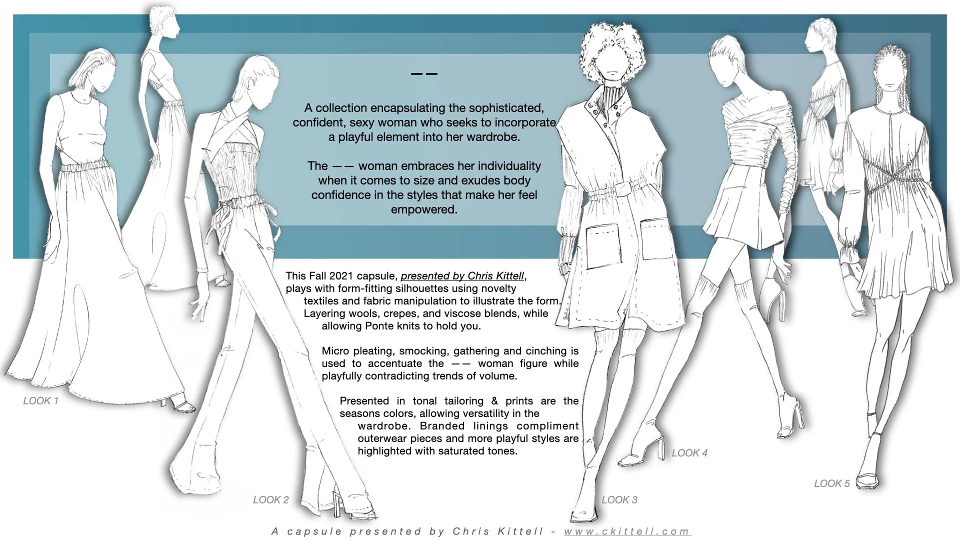 This Fall/Winter capsule explores form-fitting silhouettes through the lens of novelty textiles and fabric manipulation. Luxurious layers of wool, crepe, and viscose blends are paired with supportive ponte knits that contour and embrace the body.